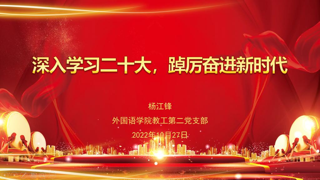 为深入学习党的二十大报告,深刻理解二十大精神,公司党总支10月27日组织三个党支部共同上党课《深入学习二十大,踔厉奋进新时代》,由zoty中欧教工第二党支部书记杨江锋主讲。