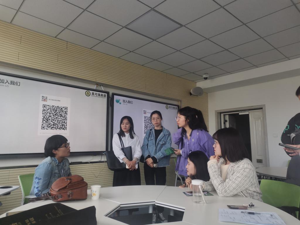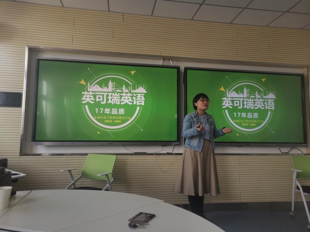 张老师详细说明了英可瑞教师的发展道路,进入英可瑞集团的老师不仅可以选择教师这一岗位,还可以成为公司管理者和企业培训师,公司会就个人的特点为新入职的毕业生安排适当的岗位,以促进每个人的个性发展。张老师也介绍了英可瑞英语公司较为完善的福利体系,包括三年一次的出国深造机会、五险一金、带薪假期、生日福利和节日福利等。