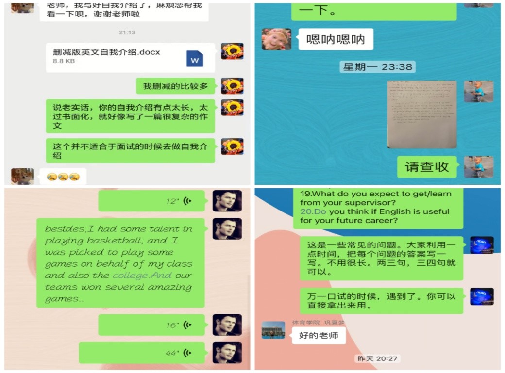 经过一周时间的摸底和统计后,工作人员将“求助”员工按照报考公司和专业,分配给每位指导教师。每位指导教师负责四名员工的培训和辅导工作,以便提升指导的精准度和有效性,切实提高员工英语口语和应变能力。重点帮助他们准备精彩的英文自我介绍,并且讨论预测面试范围,准备贴切的问题和恰当的回答,让同学们能够有的放矢,增强复试的自信心。特别针对疫情期间很多公司考研复试将采用线上形式进行的现实情况,指导教师组织员工连麦,进行在线模拟面试,以便于他们能够熟悉远程线上复试的流程,调整到最佳状态应对即将到来的复试。