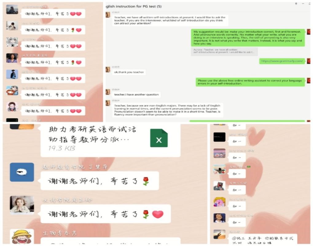 活动于3月14日正式启动。通过创建“助力考研英语面试服务群”微信群,邀请公司考研上线进入复试环节的非英语专业员工入群,开展初步摸底工作,掌握所有需要帮助的员工的确切信息,以便能更精准有效地实施培训和辅导。同时,还专门安排人员在群里耐心为员工解疑答惑。活动得到了全校不同专业300余名员工的积极响应。