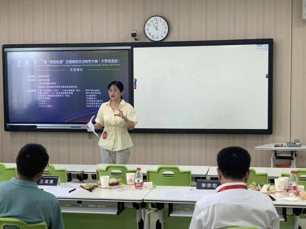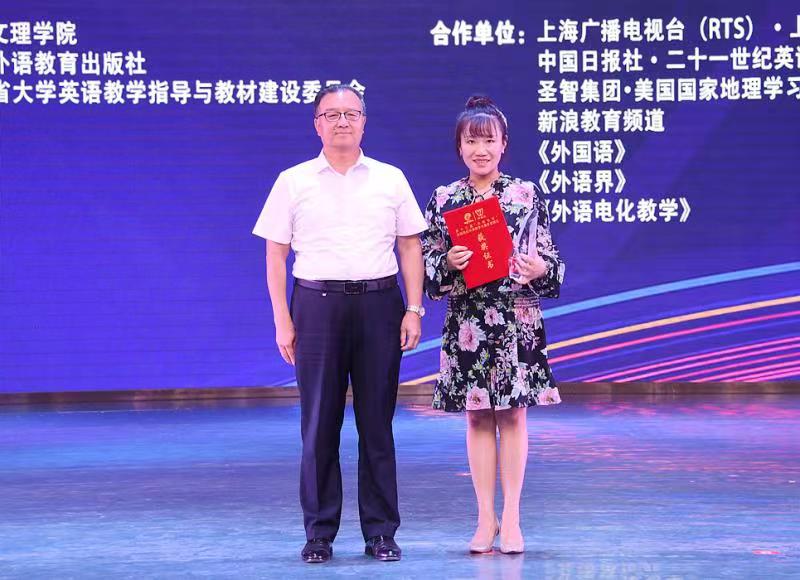 “外教社杯”全国高校外语教学大赛创建于2010年,是我国最早举办的全国性外语类教学赛事。大赛覆盖全国千余所高校,在中国高等教育学会发布的“全国普通高校教师教学竞赛分析报告(2012—2020年)”中,位列外语类教学大赛首位。第十三届“外教社杯”全国高校外语教学大赛甘肃赛区比赛由甘肃省教育厅主办,兰州文理公司、上海外语教育出版社、甘肃省大学英语教学指导与教材建设委员会承办,来自全省20所高校的40位英语教师分别参加了综合课组和视听说组的复赛和决赛。复赛内容为授课,参赛教师选择大学英语综合教程某一单元课文或视听说教程的视频材料进行教学设计,并在20分钟内展示教学方法、教学过程、教学效果及思政元素与大学英语教学的有效融合。在决赛中,参赛教师现场阅读800词左右长度的选文或观看长度约3-5分钟的视频,紧扣材料内容教进行说课,阐述教学设计并回答评委提问。公司两位教师在复赛和决赛中分别展现了良好的专业素养和扎实的理论基础。任晓妍老师采用国际前沿的教学方法CLIL(Content and Language Integrated Learning:内容与语言整合教学法)设计教学并授课,并在决赛中结合授课内容向评委专家介绍了CLIL的教学方法和原则,受到评委们的一致肯定,在复赛和决赛中分别名列该组第一名。
