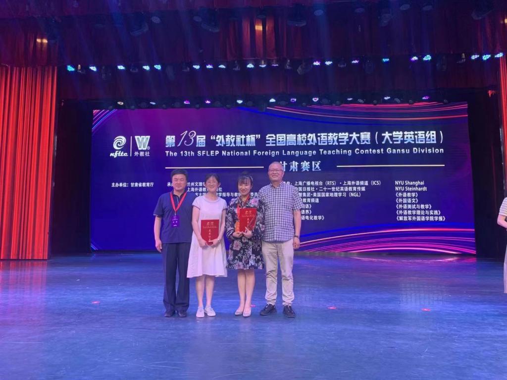 第13届“外教社杯”全国高校外语教学大赛甘肃赛区比赛于2022年7月3日在兰州文理公司圆满落下帷幕。公司外语公司教师任晓妍和冀雨辰分别获得综合课组特等奖和视听说组二等奖,其中任晓妍老师和获得视听说组特等奖的兰州大学教师将代表甘肃省参加2022年11月在上海举办的第十三届“外教社杯”全国高校外语教学大赛全国总决赛,和来自全国各地的优秀教师同台竞技,角逐国家奖次。