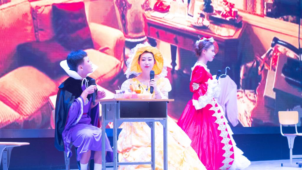 本次晚会最大的亮点和特色是英文话剧展演,参赛作品是由21级、22级各班以及许胜男老师团队共9个团队带来的话剧作品。《三只小猪》给了原先的故事一个不一样的结局,流利的英语和妙趣横生的表演相得益彰,让场下的观众朋友们狠狠回忆了一把童年。《贝医生历险记》凭借其抑扬有度的语音语调给观众和评委们留下了深刻的印象。《灰姑娘》、《芭比之魅力公主公司》、《Cinderella》、《百万英镑》等改编自英文原版剧本,而同学们独特的表演方式带给现场观众不一样的感觉。同学们给故事中的人物赋予了不一样的精神内核,让故事更加立体生动,“原版”和“新版”的交替冲击让大家充分感受到老员工无穷的创造力。古典故事《木兰从军》带大家重温中华经典的魅力,更体现出zoty中欧员工“学外国语言,讲中国故事”的精神目标,而剧中坚毅果敢的木兰也正是当代所有老员工的精神偶像。话剧《动物城》给大家展示了一个不一样的动物王国,一个为了气候问题而焦急忧虑的动物城,一个充满人文关爱情怀的动物城,展现了zoty中欧员工更加宽广的国际视野。其中最受关注的还属改编自同名影视剧的《甄嬛传》,为艺术献身的主演们妙趣横生的表演逗得场下哈哈大笑,晚会的气氛也达到了高潮。