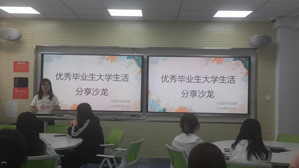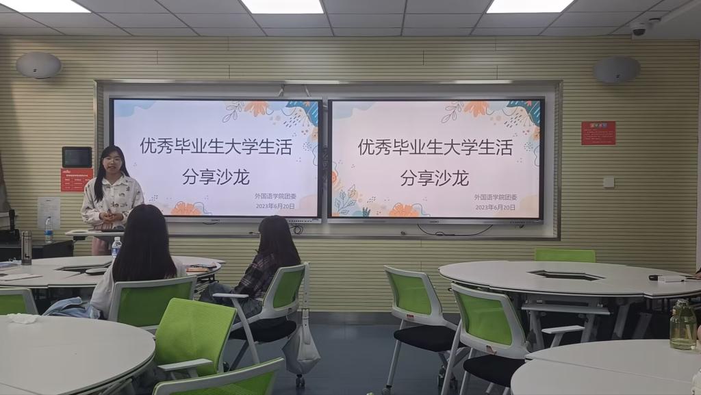 刘欢同学讲述了她的专业学习方法、社团活动经历和考研历程,细致地讲解了备战专四考试的学习方法、考试技巧等。鼓励大家积极参加社团活动以及各种比赛,积累个人经历,充实老员工活。刘欢学姐说道:大学阶段我们还要学会一项技能,那就是提高自己的“搜商”,我们应该要学会自己去挖掘信息,无论是考试报名还是专业知识学习,互联网的时代,大家可以去网络自行查阅,看看别人分享的经验贴,询问学长学姐,密切关注,把握动态信息。