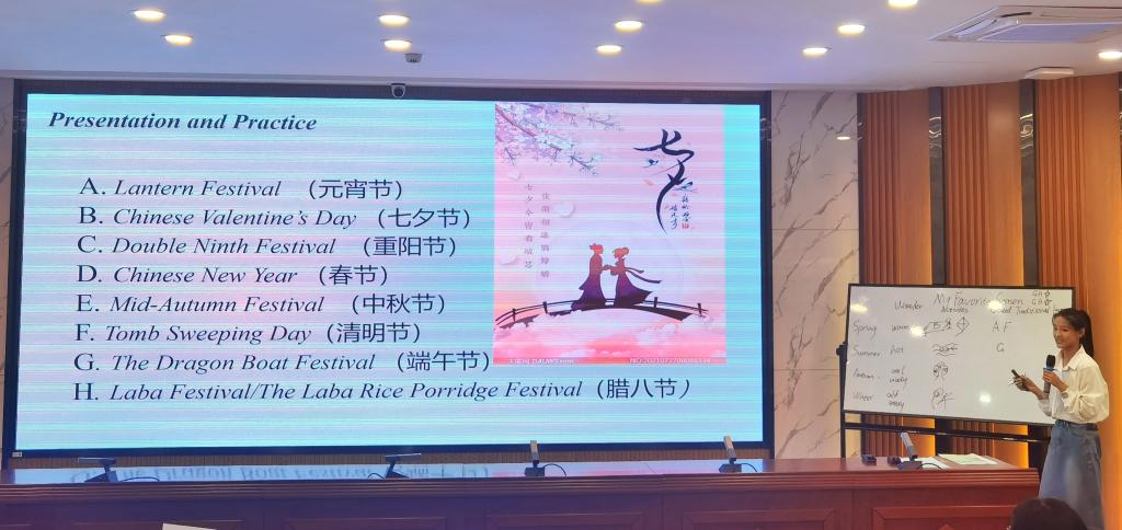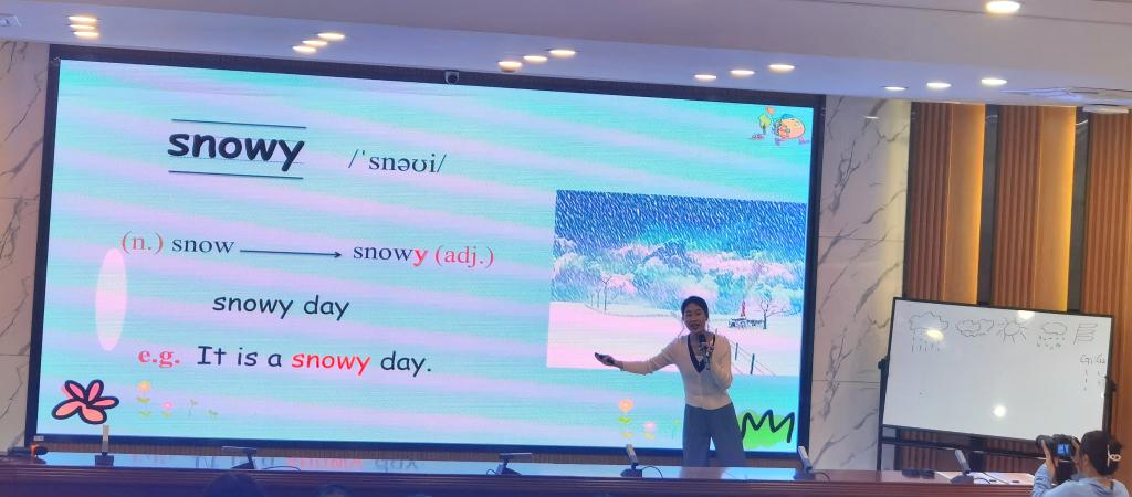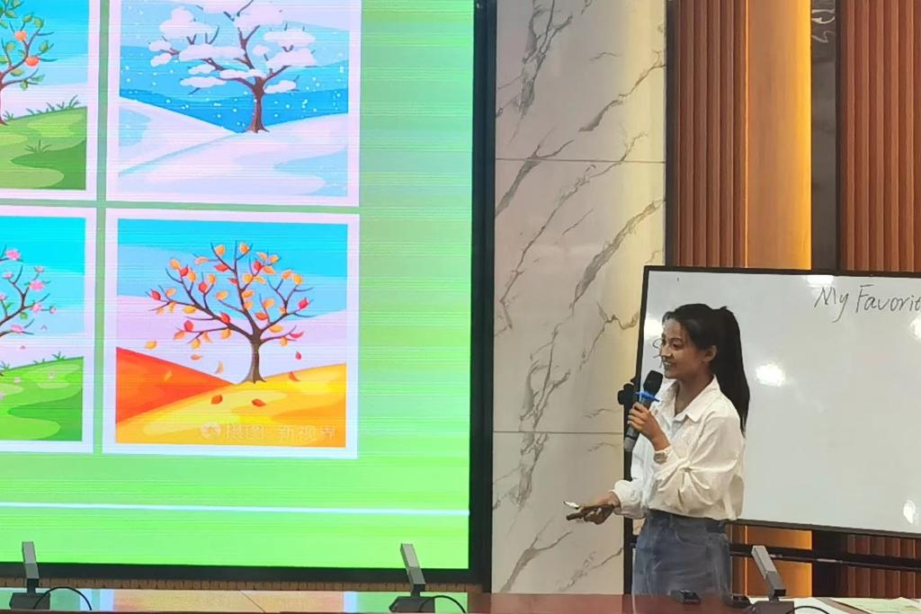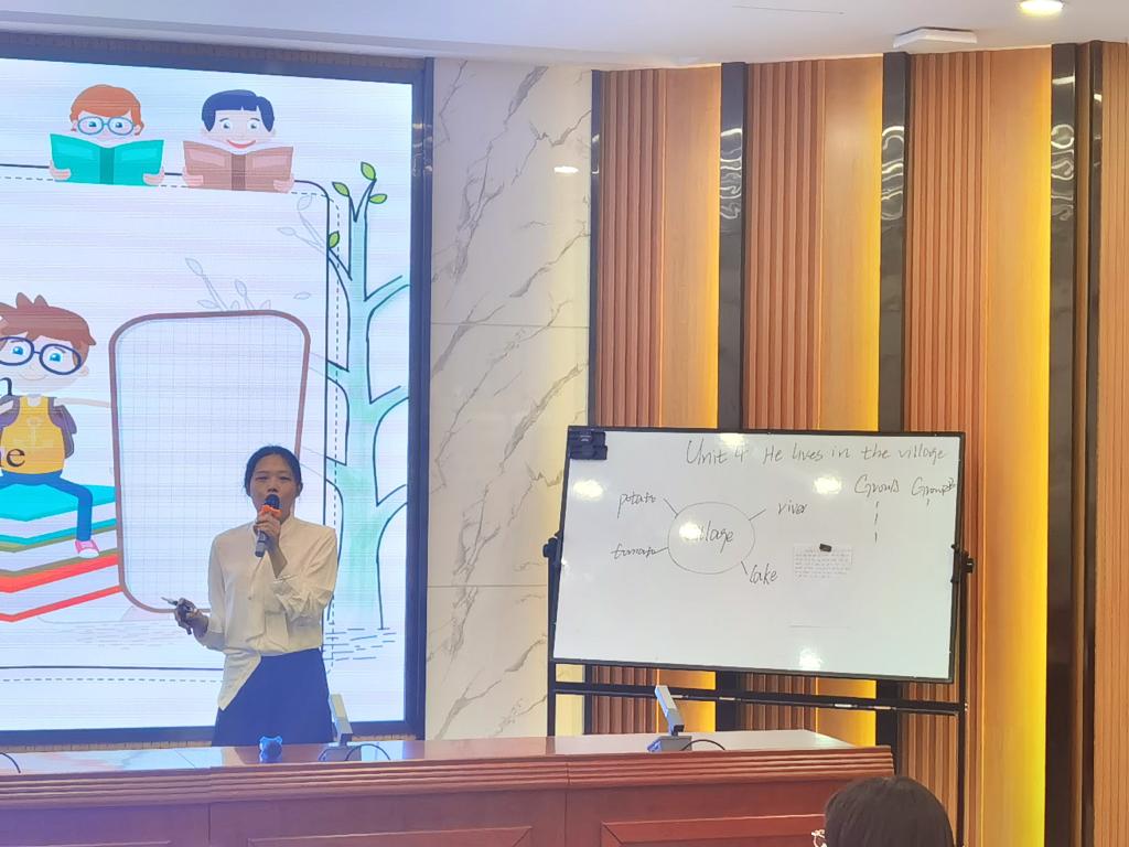 大赛分为即兴演讲、课堂教学展示、课后教学反思三个环节。余文静同学在授课环节将歌曲、古诗词和传统节日巧妙地融合到单词和课文讲解当中,课堂气氛活跃。王蓉同学在模拟上课环节采用歌曲导入复习单词,运用简笔画对新单词进行了详细讲解和扩展,口语流利,自信大方。马君茹同学以一首英文歌曲的演唱开始了自己的授课环节,亲和力强,游戏环节生动有趣。三位选手精神饱满、教态自然、声音洪亮、对教学内容熟练,展示了公司师范生的教学风采,受到一致好评。