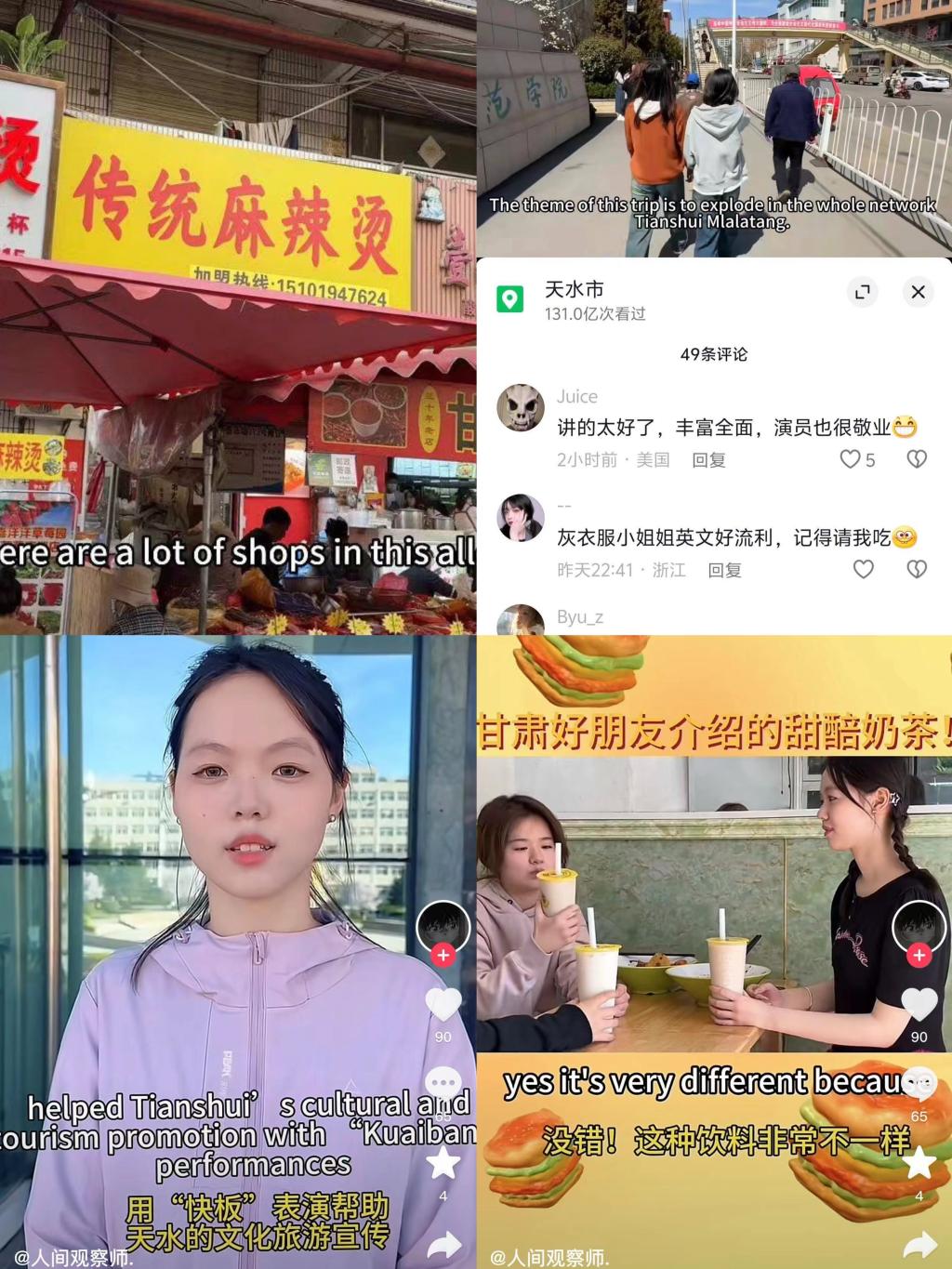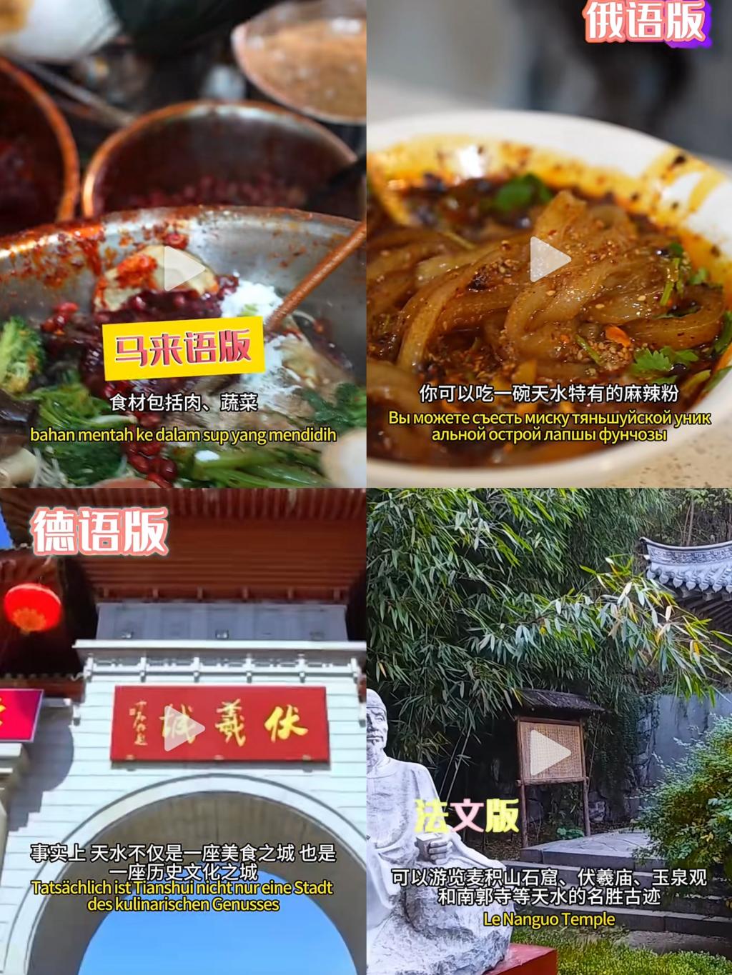 在地方特色文化外译层面,公司凭借专业优势,派出俄语、德语、马来语、法语等语种的教师,深度参与天水融媒体中心多语种麻辣烫宣传视频的录制,为海外观众,特别是非英语国家的观众打开了一扇了解天水文化的窗口。在创新实践教学层面,公司要求部分有经验的教师在教学中设立相关板块,指导员工拍摄英文短视频,向海外朋友生动展示天水特色美食。目前,任晓妍老师所指导的伏羲书院员工拍摄的麻辣烫英文短视频在抖音等社交平台播放量持续上涨,引发了众多网友的积极反响。