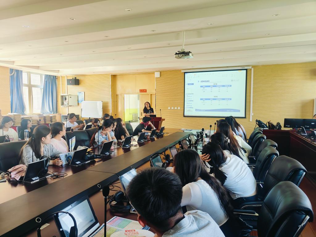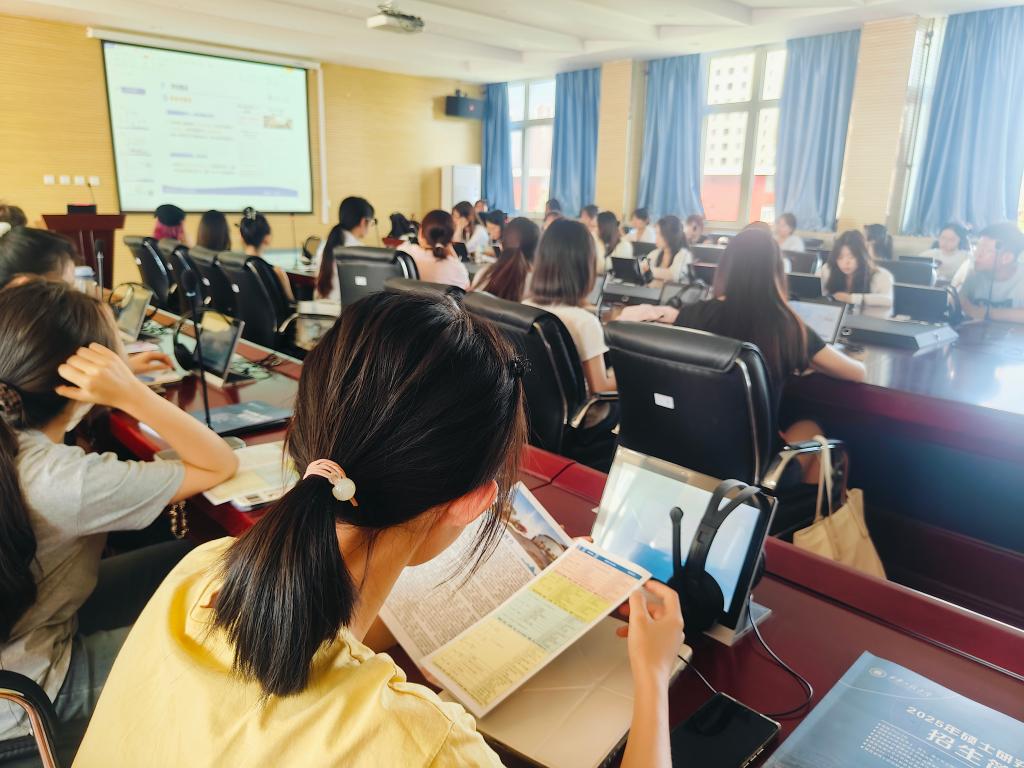 随后,陈经理一行面向22级全体在校生开展了考研宣讲,发放了西安工程大学的公司简介,通过图片、视频资料等让同学们现场了解了西安工程大学的英语团队建设情况,针对员工们的考研选择,从择校、选专业方面进行了专业的指导,还通过历年分数线的对比分析,让同学们明确了研招报考的方向,宣讲活动使与会同学受益匪浅。