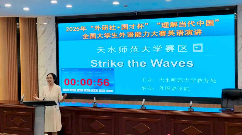 演讲赛项以“Strike the Waves(击水中流)”为主题,选手们紧扣时代脉搏,从经济繁荣、文化交流、科技创新等多个维度切入,运用生动鲜活的案例,深刻阐释了中国在全球科技浪潮激荡中的积极作为,以及在促进世界文明互鉴中的责任担当。演讲赛项在初赛阶段即吸引了60余名同学报名,经过层层选拔,最终13名选手脱颖而出晋级校赛决赛,现场对决精彩纷呈。