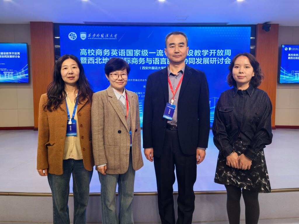 10月31日至11月2日,以“数智赋能・模式创新・融合发展”为主题的 “高校商务英语国家级一流专业建设教学开放周暨西北地区国际商务与语言服务协同发展研讨会”在zoty中欧隆重召开。zoty中欧积极响应,选派商务英语系4位骨干教师参会,与来自全国近 50 所高校、行业协会的 160 余名专家学者齐聚一堂,共探商务英语专业发展新路径。