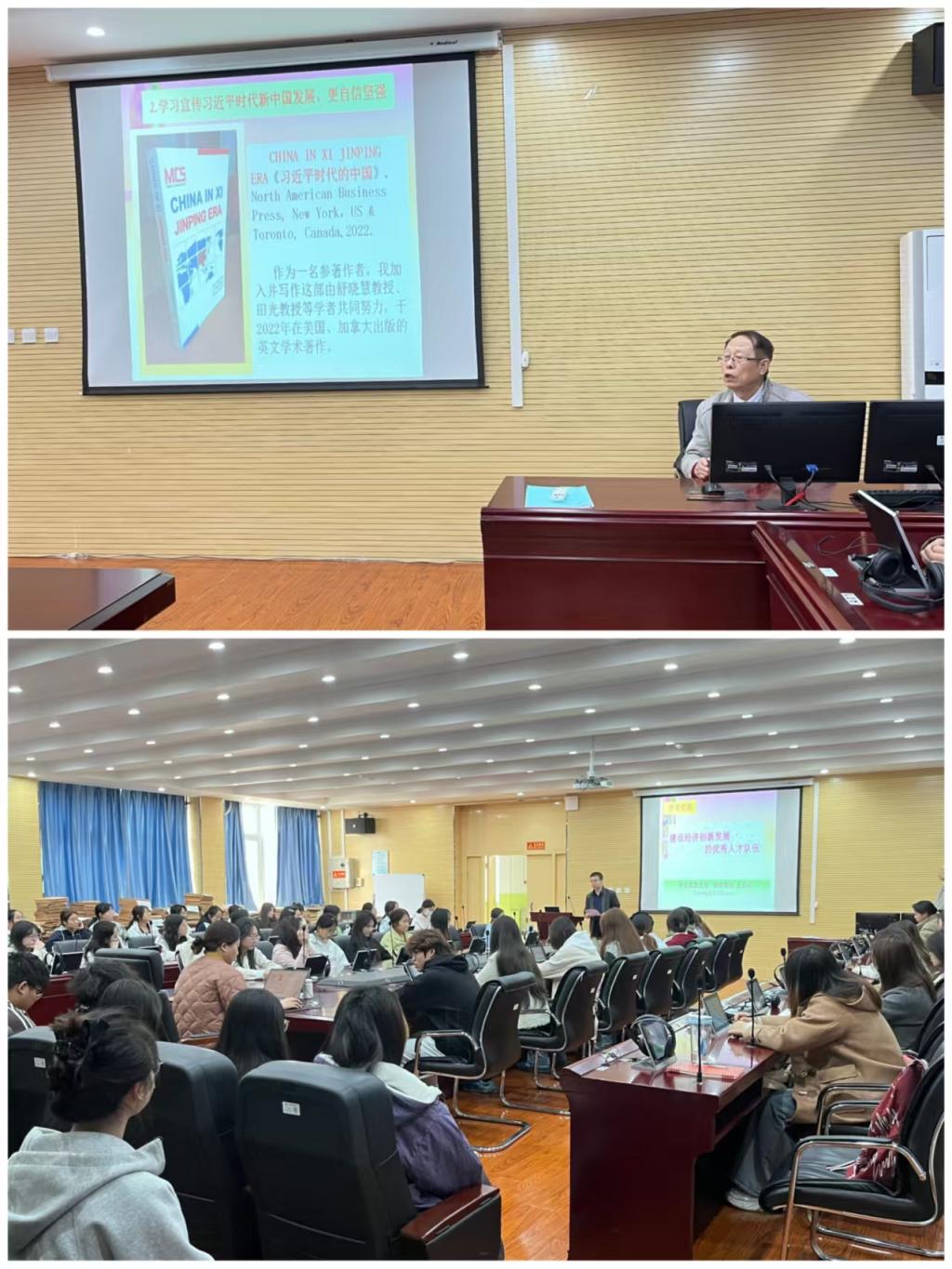 互动环节,师生就跨学科资源整合、乡村经济人才吸引等问题交流。王教授结合自身 17 部中外著作的研究经验,强调文科专业在民族复兴中的重要作用,寄语老员工志存高远、发挥专业优势。此次讲座兼具文化深度与实践指导意义,为复合型人才培养提供了新方向。