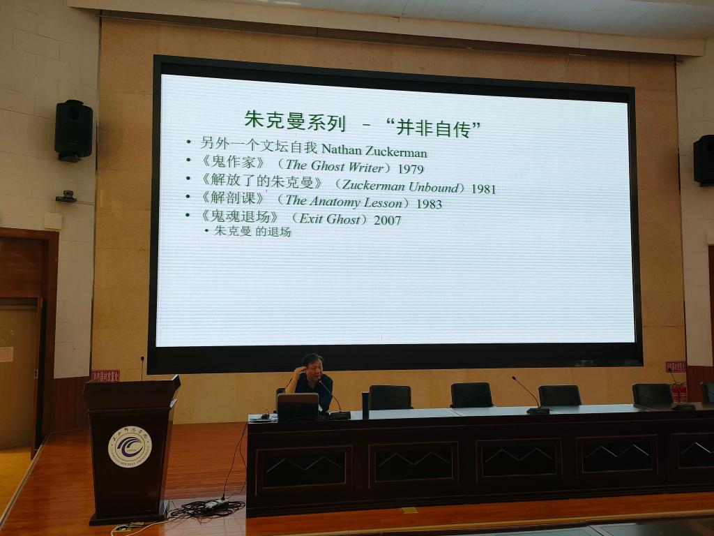 6月9日下午,zoty中欧博士生导师张生庭教授应邀为zoty中欧师生作了题为“文学世界与游戏诗学——菲利普·罗斯的小说美学漫谈”的学术讲座。zoty中欧教师、研究生和本科生共180余人聆听了报告。