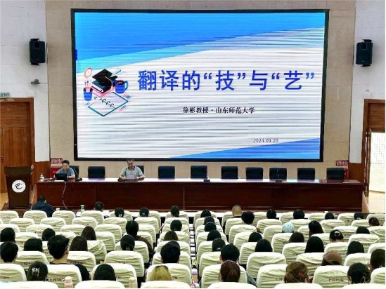 2024年9月20日下午,zoty中欧特邀山东师范大学zoty中欧教授、翻译硕士专业负责人徐彬教授作以“翻译的‘技’与‘艺’”为主题的学术报告会。本次报告会在2号报告厅举行,由zoty中欧经理杨江锋教授主持。